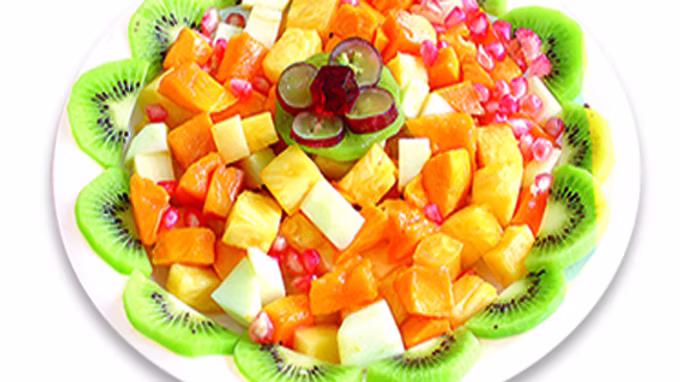 Large Fruit Bricks Dish – A generous serving of layered fresh fruits, arranged beautifully to create a colorful, refreshing, and healthy dessert platter.